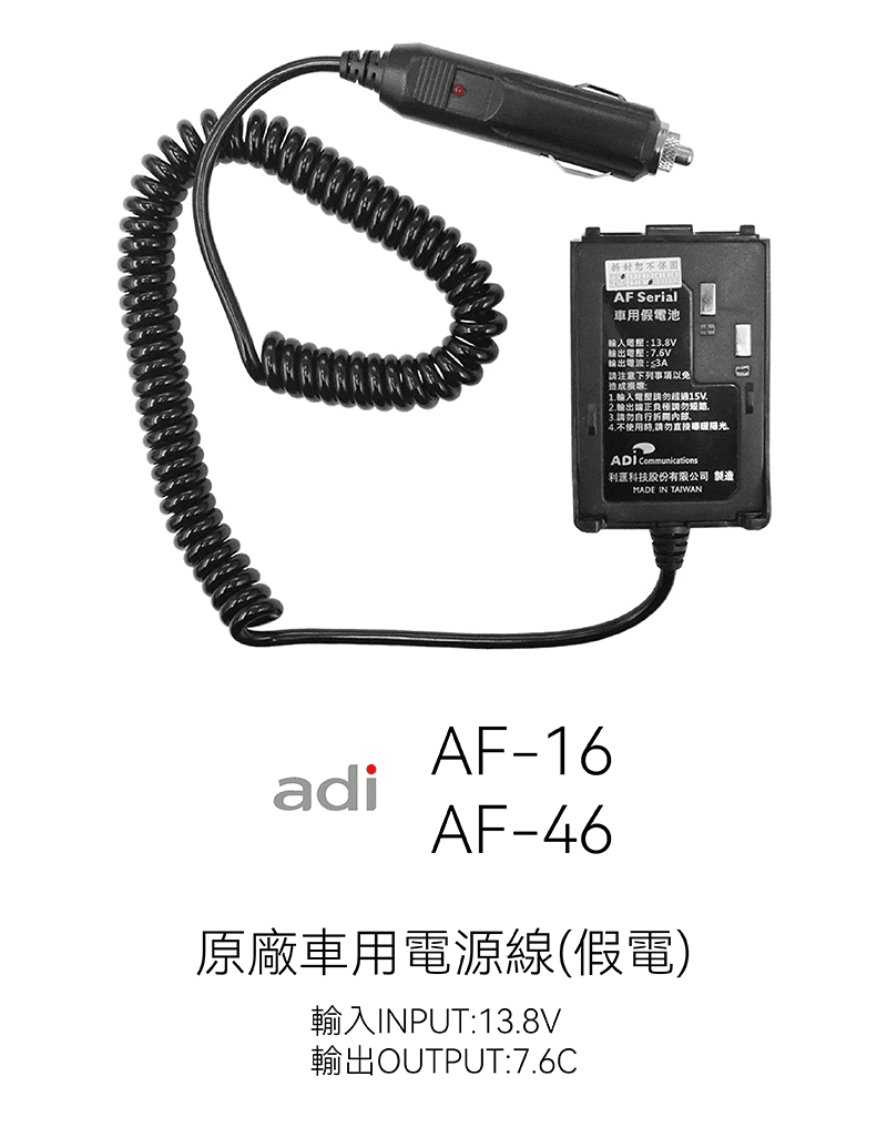ADI AF-16/AF-46 原廠車用電源線(假電)