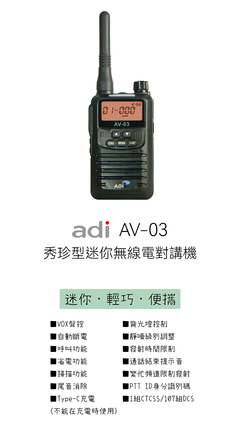 ADI AV-03 秀珍型迷你無線電對講機 (2入)