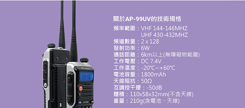ALLPASS AP-99UV 專業雙頻無線電對講機