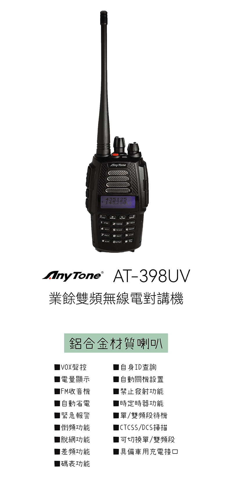 | 頻率範圍 | VHF:144~146MHz UHF:430~440MHz |