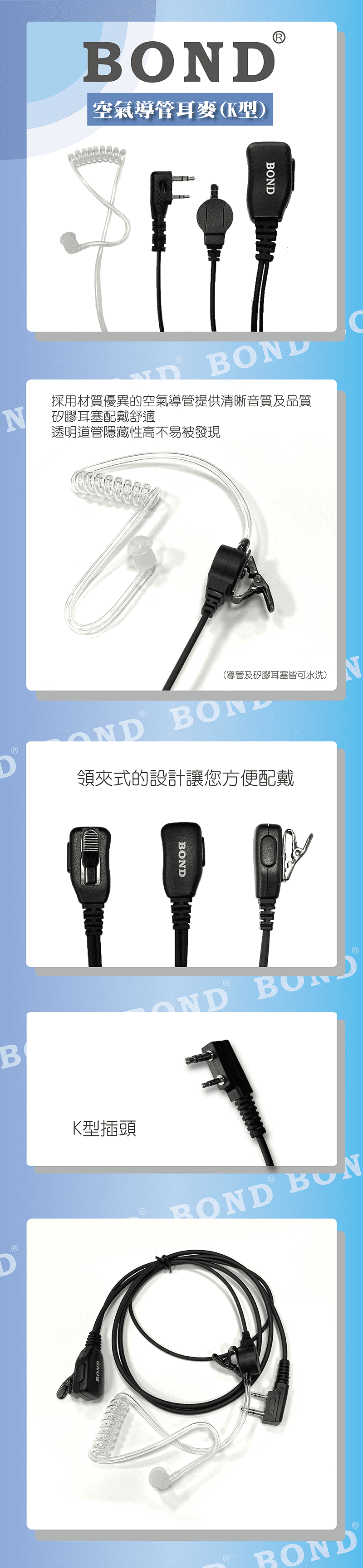 BOND FY-020K 空氣導管耳機麥克風(K型插頭)