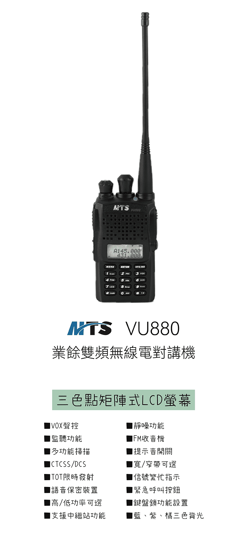 | 頻率範圍 | VHF:144~146MHz UHF:430~440MHz |